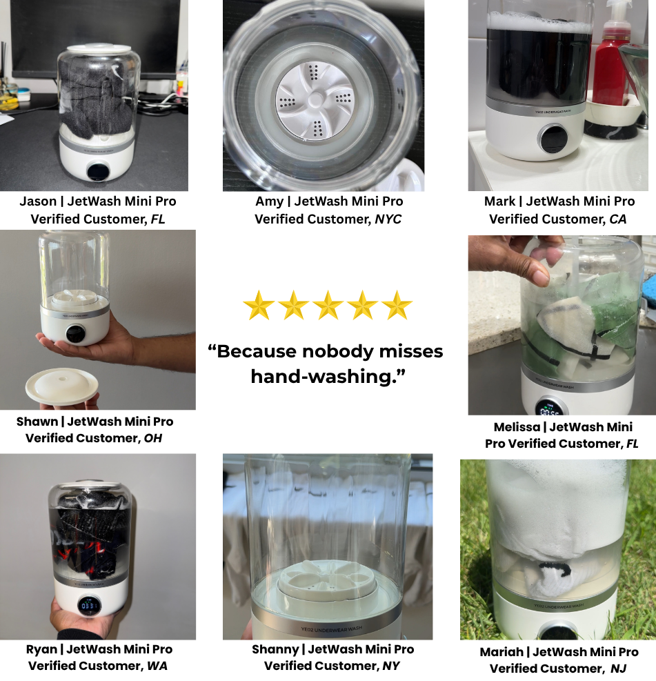 From travelers to busy parents, everyone’s loving how the JetWash Mini Pro makes laundry easier. It saves time, skips the mess, and cuts out overpriced laundry services. Don’t just take our word for it—see why customers can’t get enough!